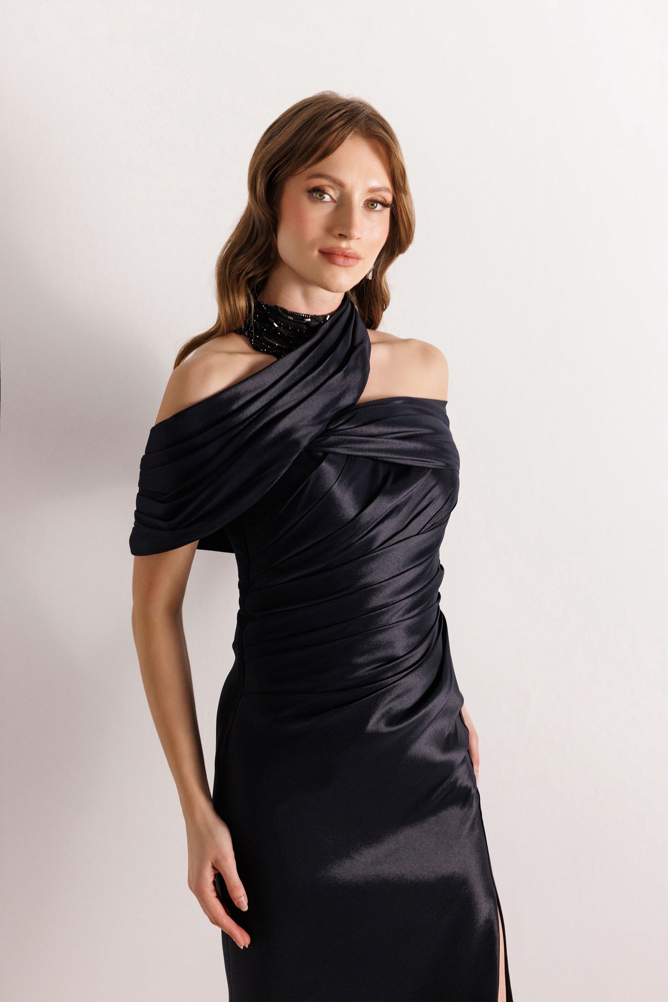 الوسم: فستان سهرة أنيق باللون الكحلي جميل يعطيكي اطلالة مميزة و ساحرة