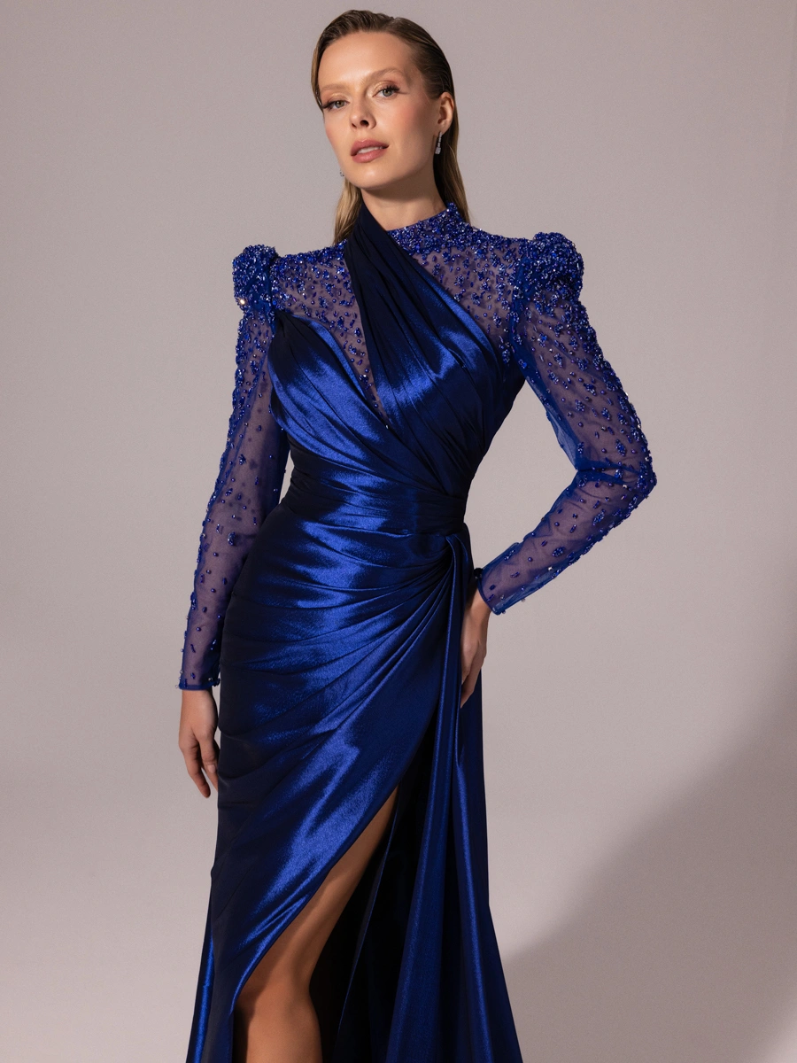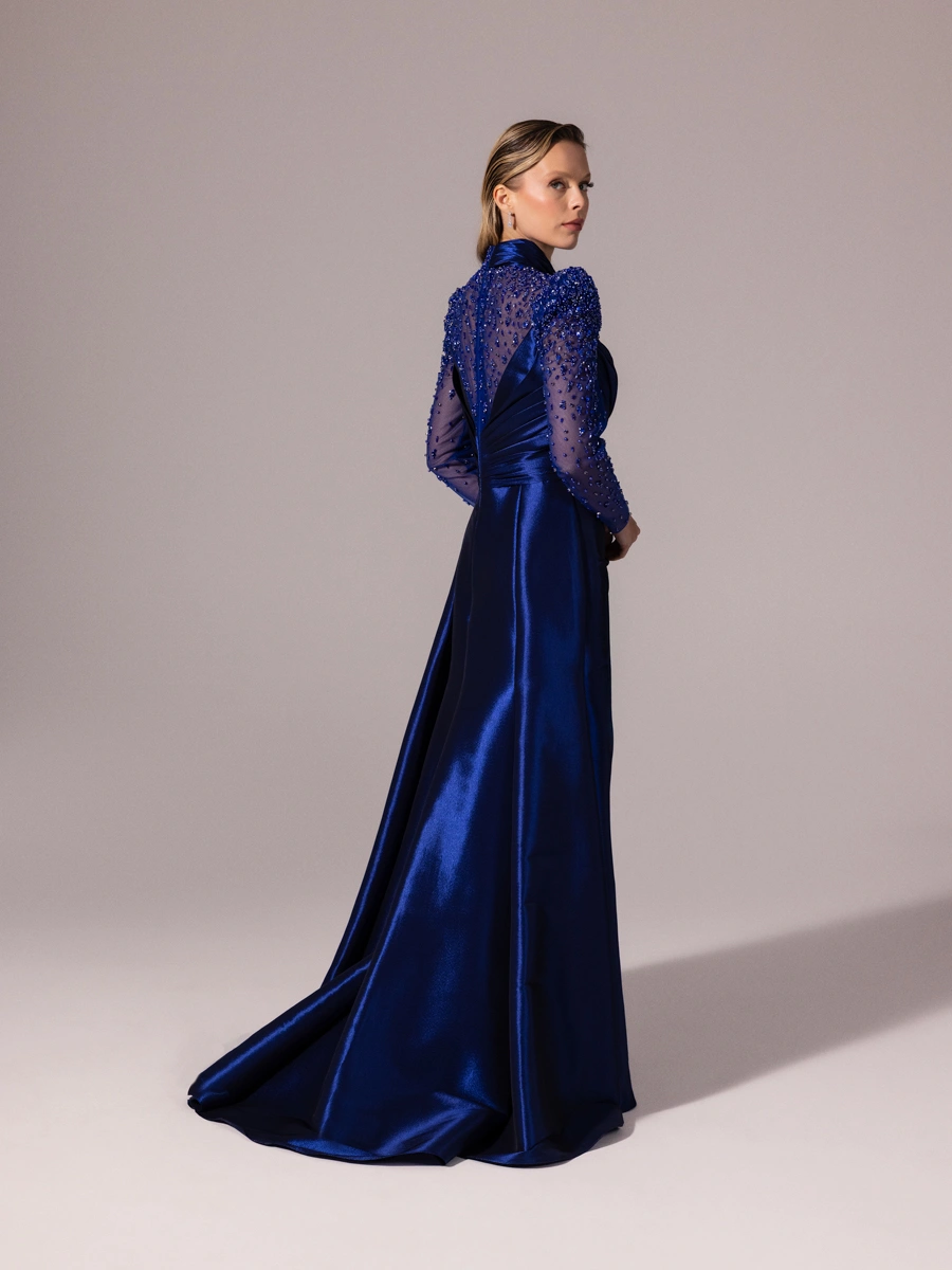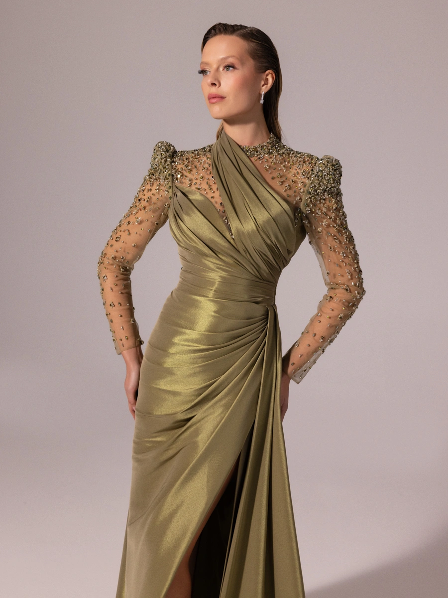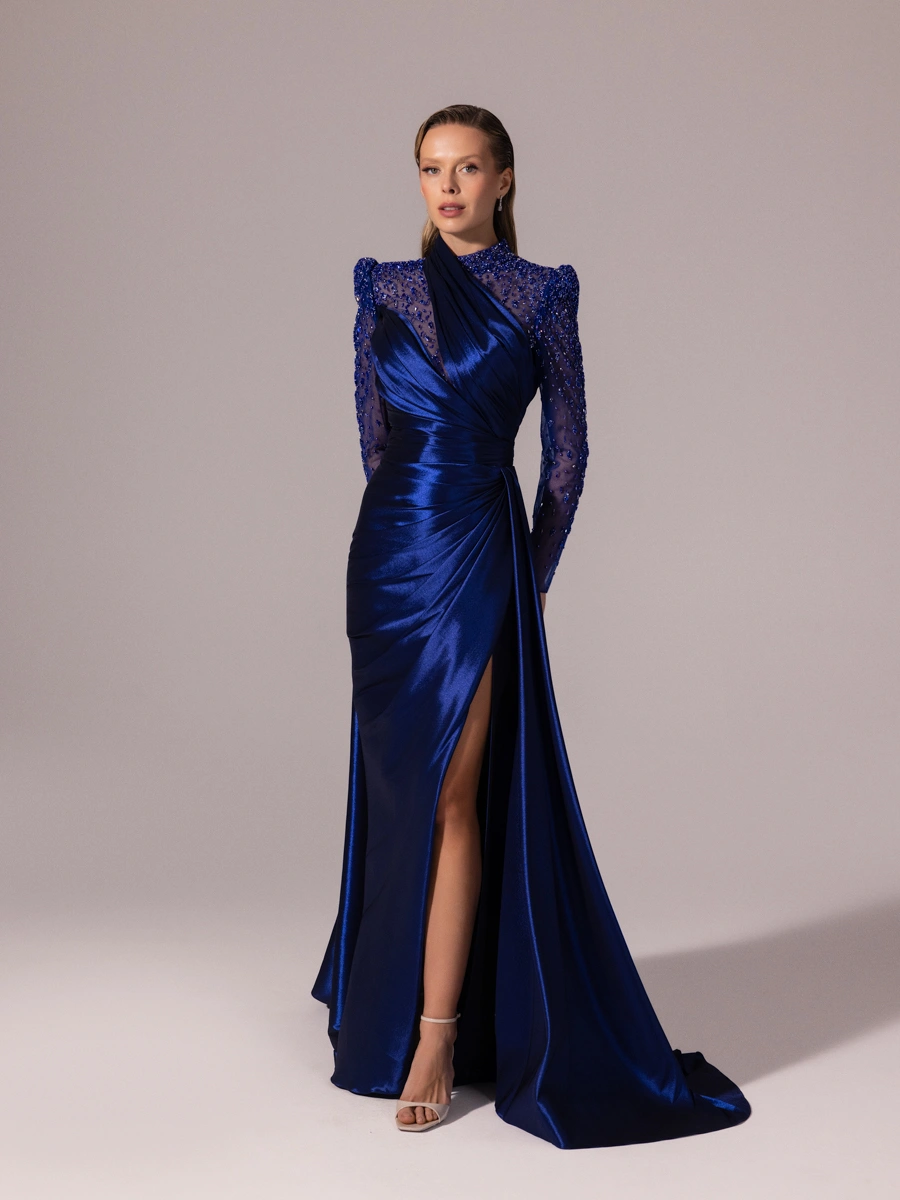 فستان سهرة مميز من قماش كريب ستان تصميم عصري يضفي جمالا وانوثة لاطلالتك