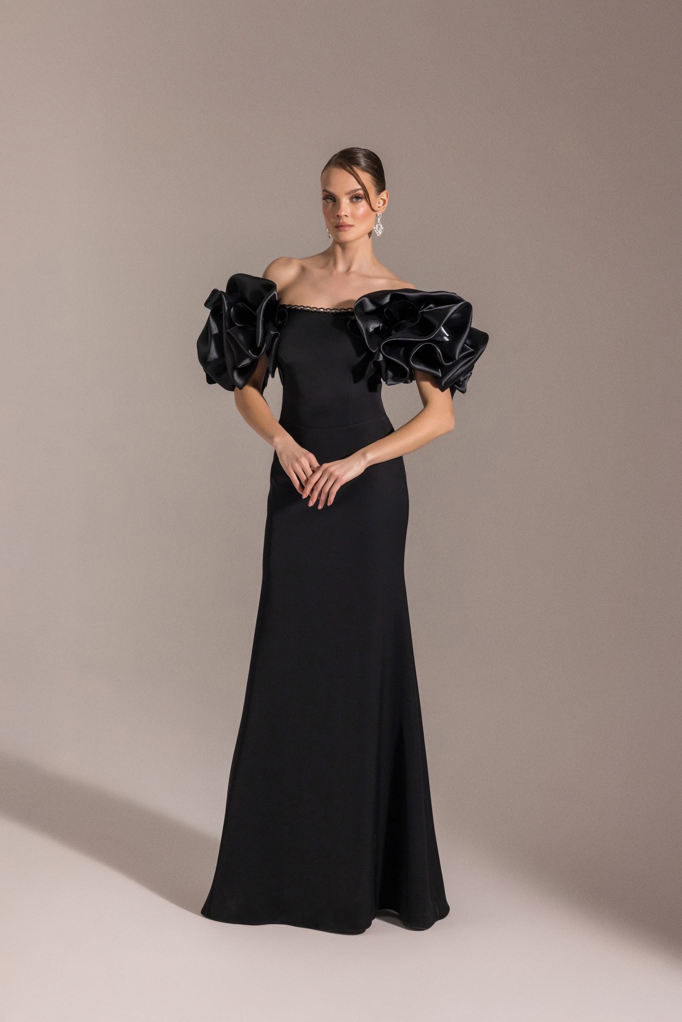 فستان سهرة راقي هادئ يناسب شخصيتك يتميز بحركة الاكتاف