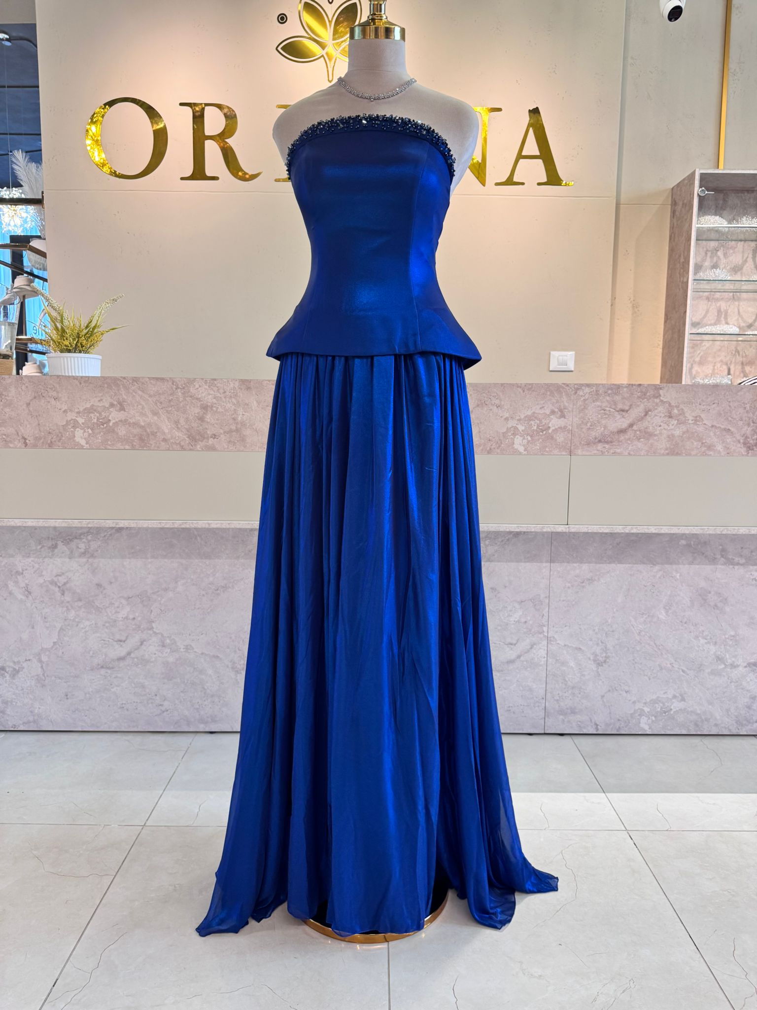 فستان مميز بقماش الاورغنزا بدون اكمام وكورسيه فرنسي يضفي جمالا وانوثة لاطلالتك
