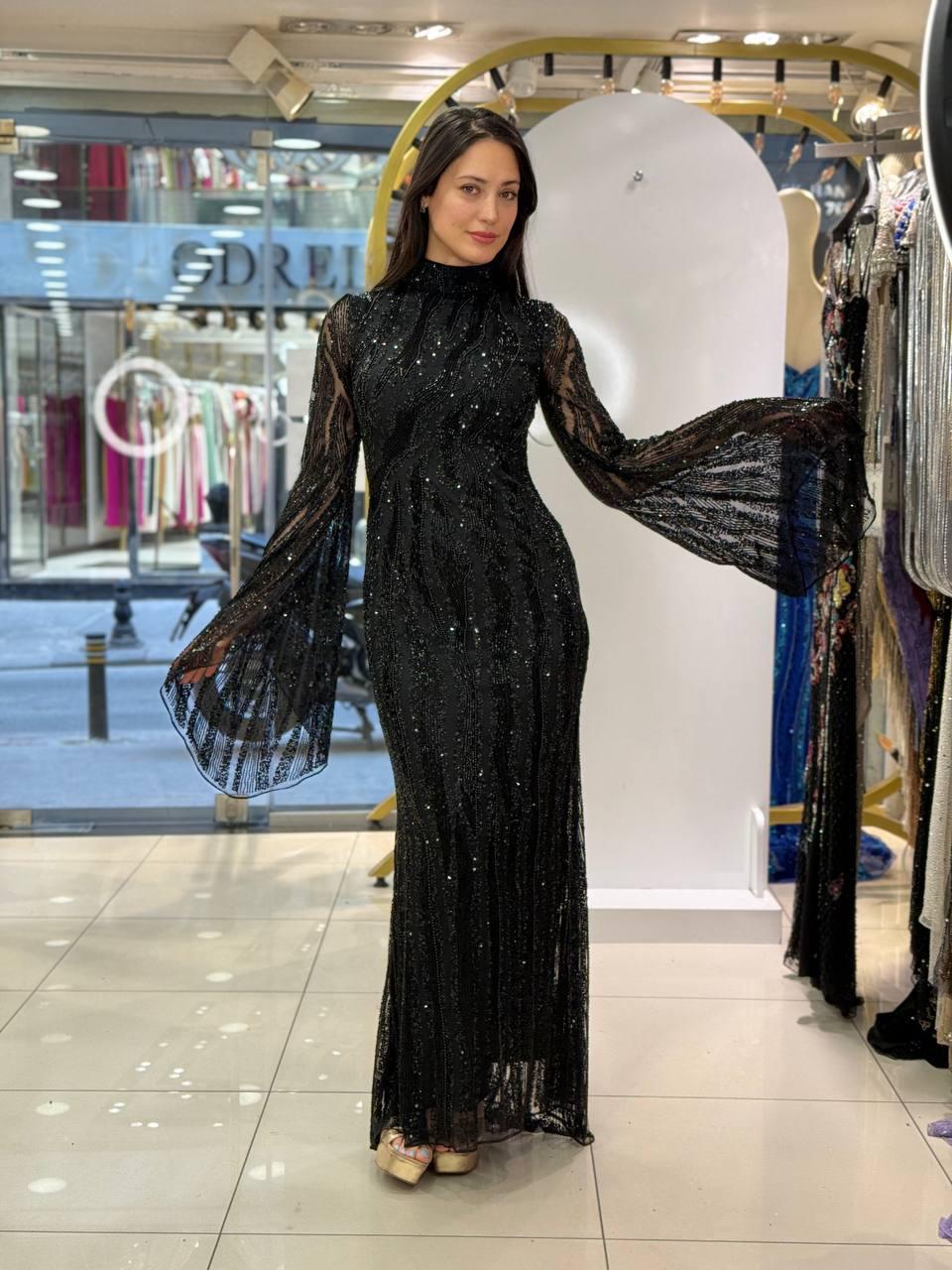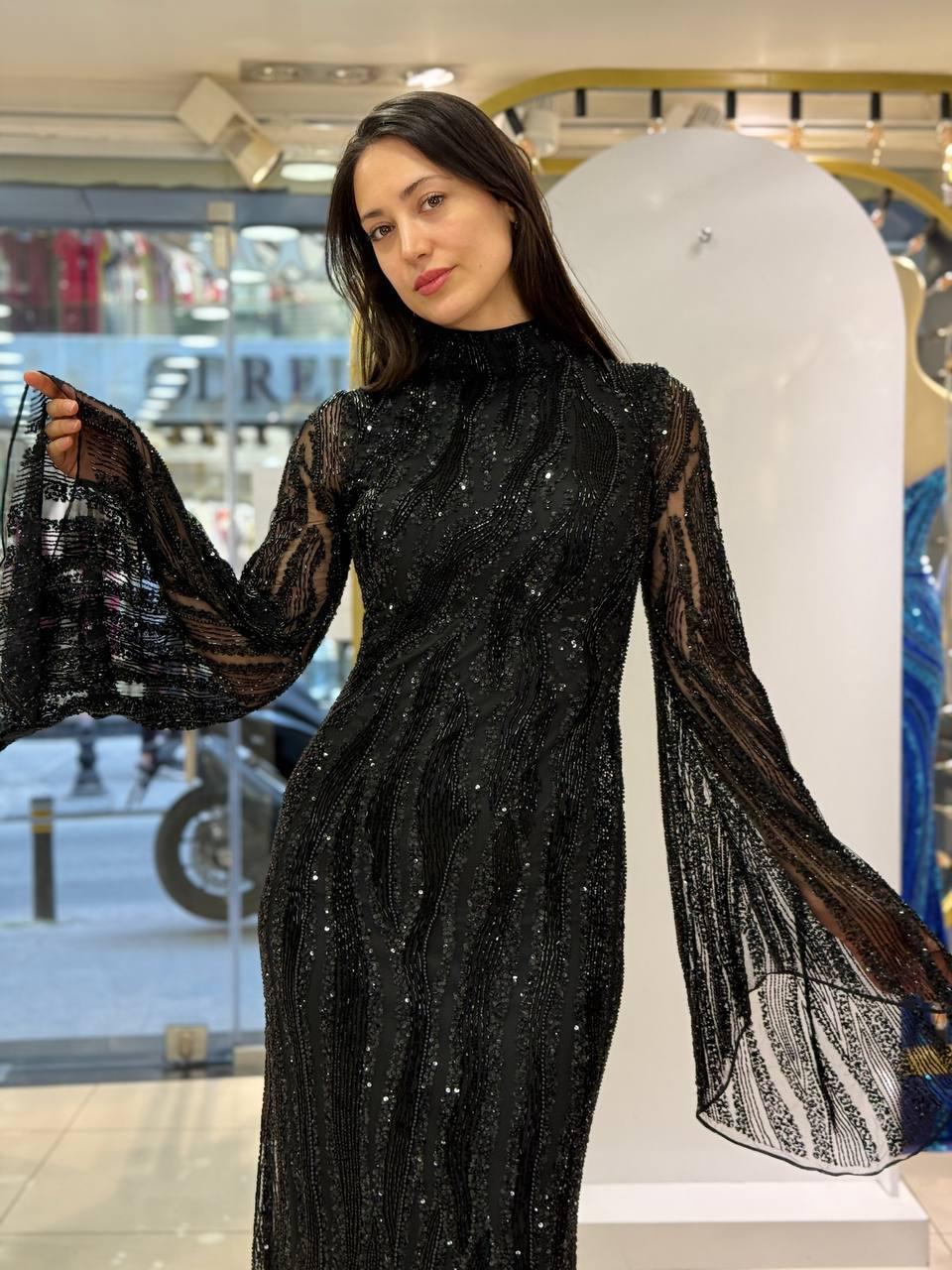 فستان باللون الاسود مطرز بالخرز والشك اليدوي يضفي لمسة ساحرة لاطلالتك